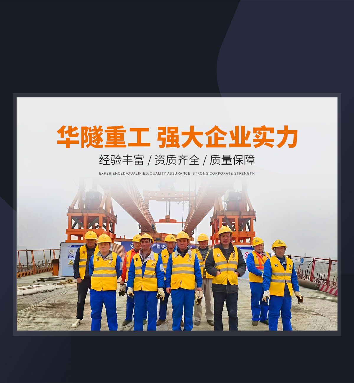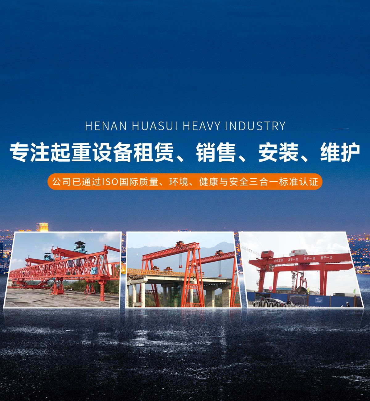 河南華隧重工機(jī)械裝備有限公司主要從事通用門式起重機(jī)、橋式起重機(jī)、電動單梁起重機(jī),輪胎式起重機(jī)、架橋機(jī)、提梁機(jī)、遠(yuǎn)梁平車、鋼絲繩電動萌蘆、卷揚(yáng)機(jī)、起重配件制造、銷售:起重機(jī)械租賃、安裝和維修,起重設(shè)備園收,機(jī)械設(shè)備維修,鋼結(jié)構(gòu)工程承包,橋梁工程及技術(shù)咨淘服務(wù),銷售五金制品、機(jī)電設(shè)備:建設(shè)工程監(jiān)理,建設(shè)工程設(shè)計(jì),各類工程建設(shè)活動,建筑勞務(wù)分包,建筑物折除作業(yè),施工作業(yè),工程管理服務(wù),土石方工程施工,裝如發(fā)運(yùn)。  公司已通過IS0國際質(zhì)量、環(huán)境、健康與安全三合一標(biāo)準(zhǔn)認(rèn)證,特種設(shè)備制造許可證和特種設(shè)備安裝改造維修許可證。擁有完熟的質(zhì)量管理體系。嚴(yán)格的管理制度,強(qiáng)大的生產(chǎn)能力和先進(jìn)的檢測手段,在保證產(chǎn)品質(zhì)量的同時,也具備了極強(qiáng)的市場競爭力。  公司堅(jiān)持科技創(chuàng)新為理念,產(chǎn)品質(zhì)量為核心,注重信譽(yù),建立了減信可靠、快捷、思速。便利周到的售后服務(wù)網(wǎng)絡(luò)。  我們擁有的技術(shù)專家和技術(shù)服務(wù)隊(duì)伍為客戶提供充善的售前技術(shù)支持和全天候的售后服務(wù)體系,讓您無后顧之憂,享受一站式的超值服務(wù)。  “華隧重工,伴您成功“是華隧重工永遠(yuǎn)的宗指,真被的希望與各界朋友攜手并進(jìn)。共創(chuàng)輝準(zhǔn)!